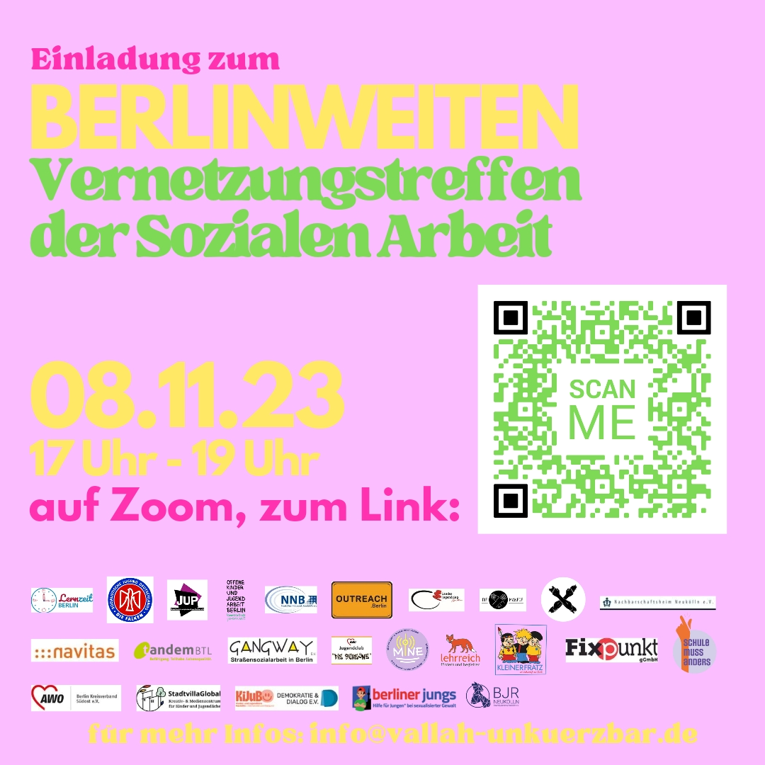 Um sich - berlinweit und bereichsübergreifend - besser zu vernetzen gibt es am 08.11. um 17:00h-19:00h auf Zoom ein Vernetzungstreffen.